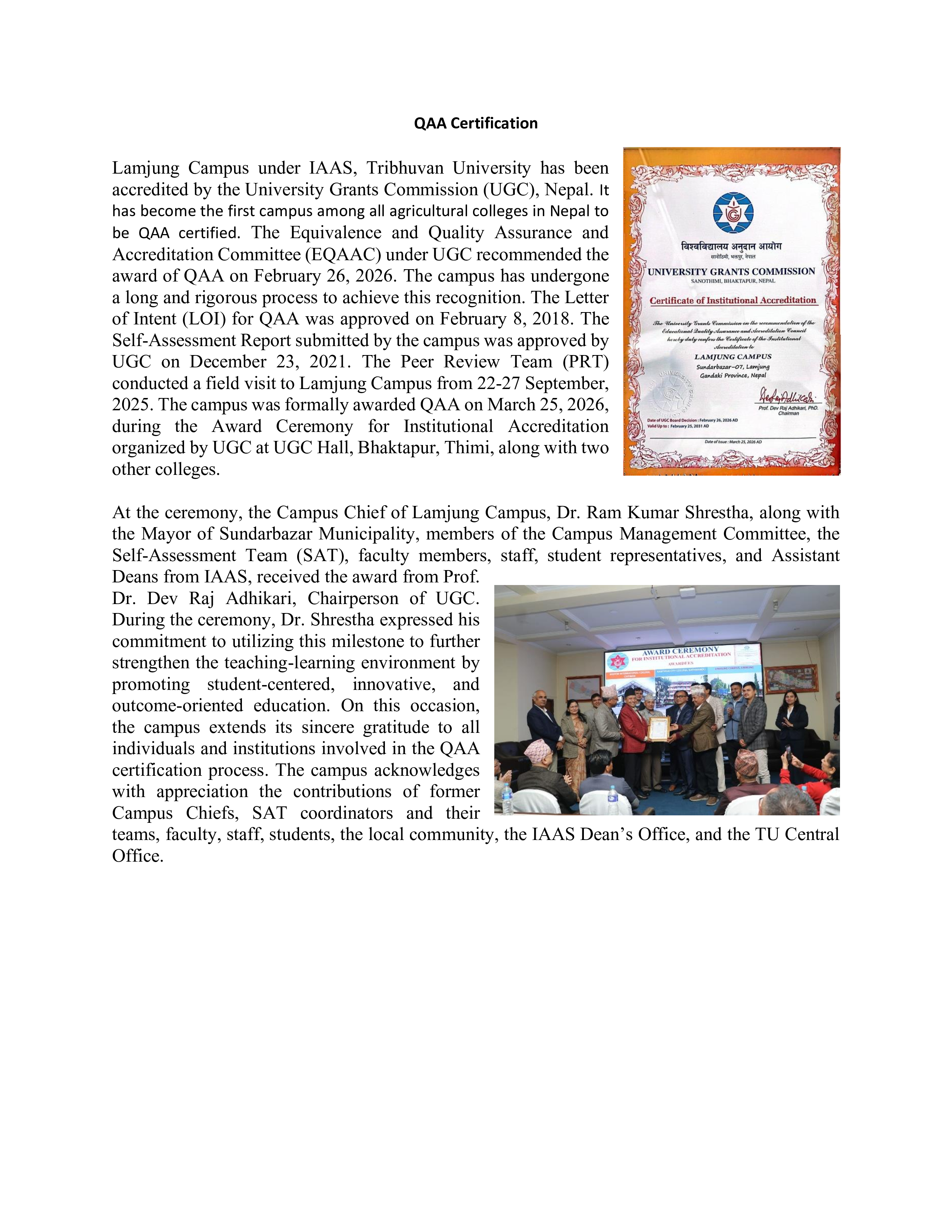 QAA Certification in Nepali