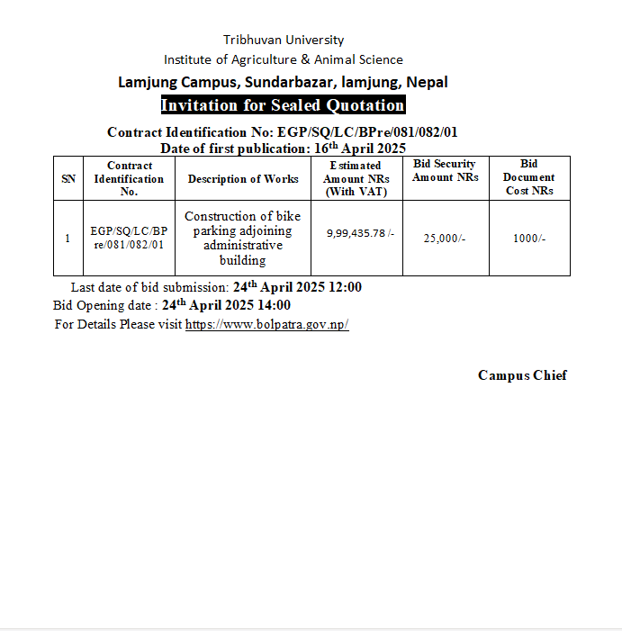 गोलिया काठ लिलाम विक्रीका लागि बोलपत्र आव्हानको सू...